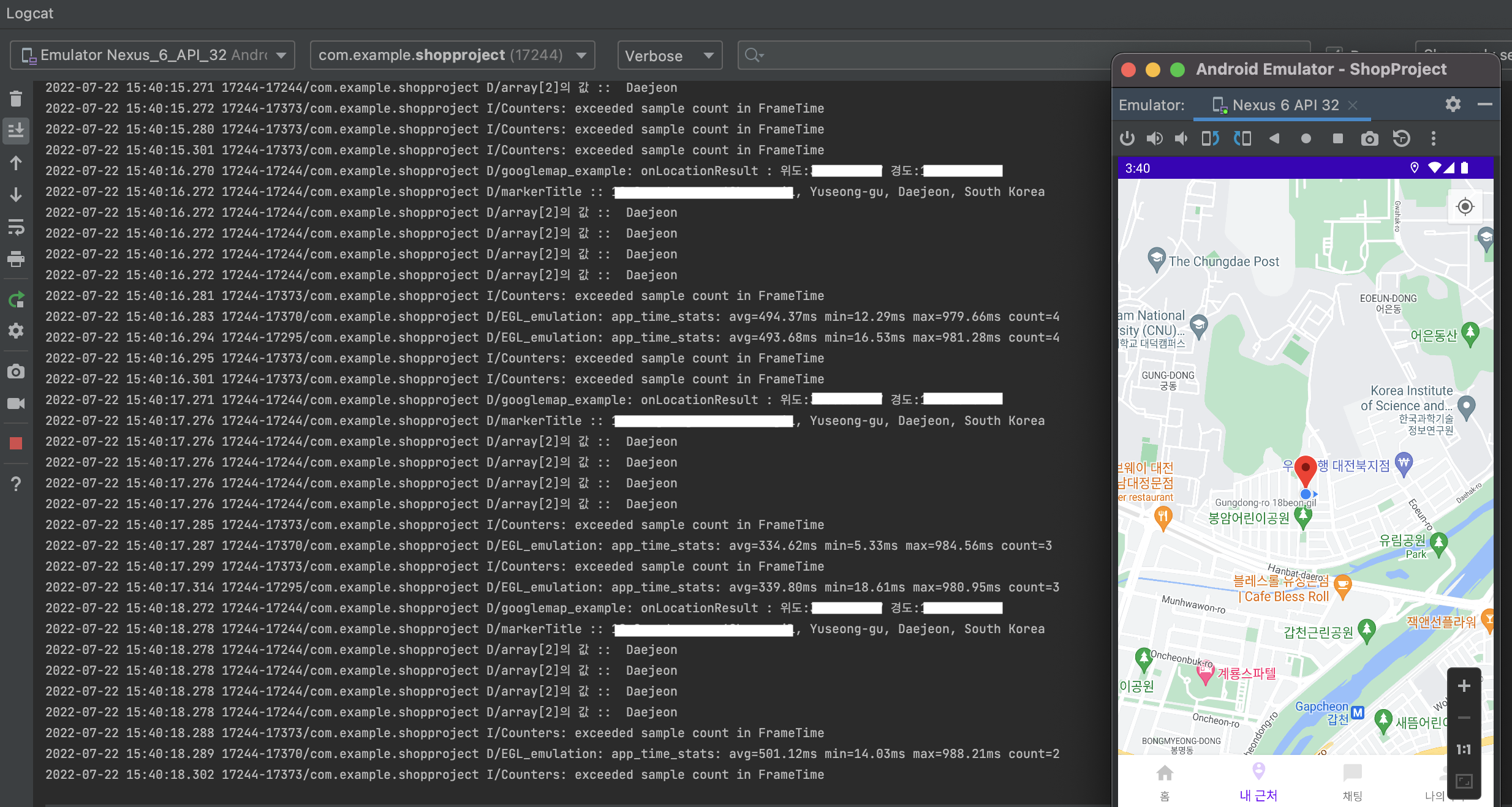 그 과정에서 구글 지도 API를 적용시키는 것까진 쉬웠고, 이것을 내가 원하는 데이터 형태로 만드는것까지 시간이 걸리긴 했지만 완성을 하였다. 내가원하는 데이터 형태로 만들었으니 이것을 다른 레이아웃(액티비티나 or Fragment)로 전달 할 수 있었느나, 이 부분에서 많은 오류가 발생하고 잘 되지 않았다. 왜냐하면