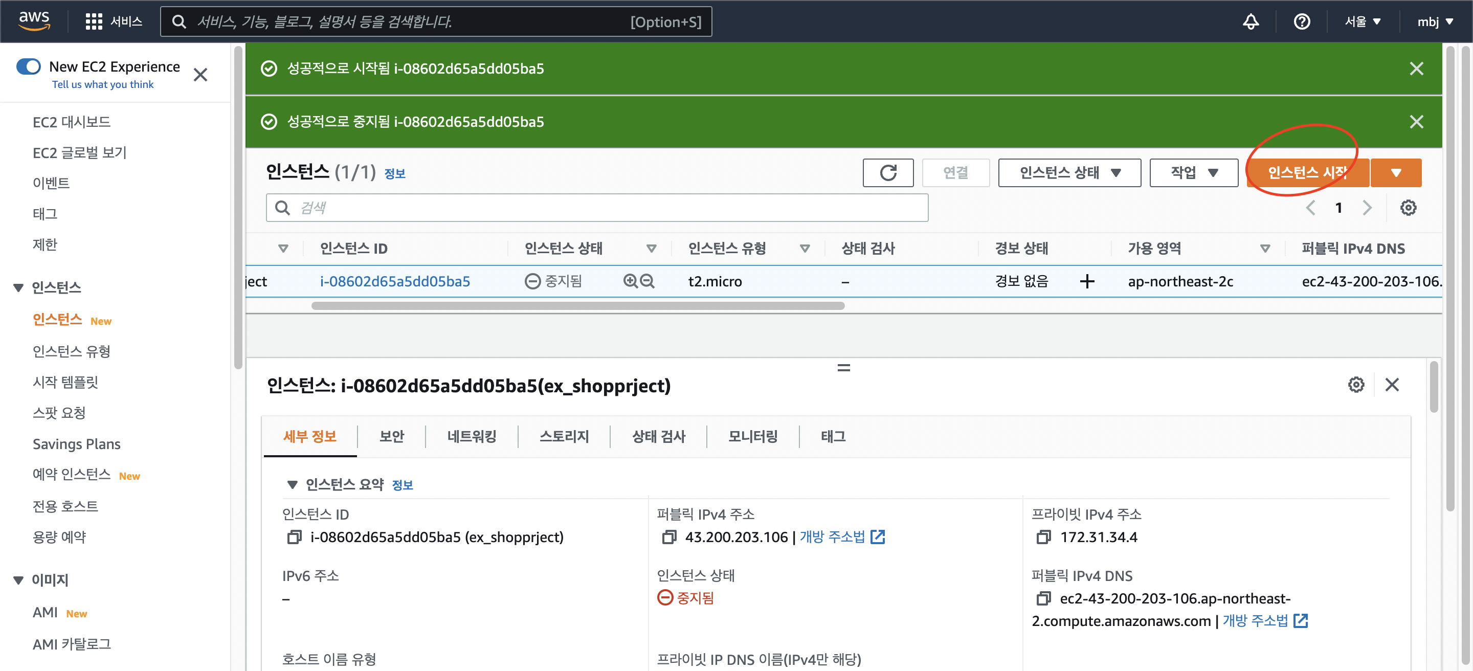 [ 인스턴스도 하나의 서버이기 때문에 IP가 존재한다. 인스턴스 생성 시 항상 새로운 IP를 할당하는데, 추가적으로 동일한 인스턴스를 중지하고 다시 시작할 때도 새로운 IP가 할당된다. 이렇게 되면 매번 접속해야 하는 IP가 변경돼서 PC에서 접근할 때마다 IP의 주소를 확인해야 하는 번거로운 과정이 있다. 그래서 인스턴스의 IP가 중지하거나 다시 시작할 때 매번 변경되지 않고 고정적인 IP(탄력적 IP)를 가지게 해야한다.