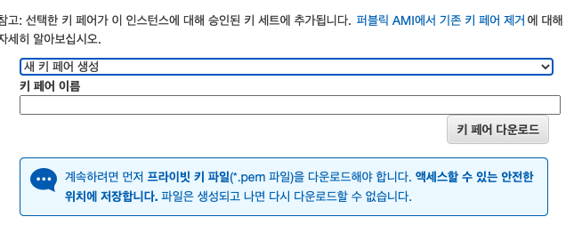 8. 키페어 선택 / 생성 > 키 페어 다운로드