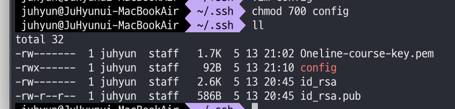 3-3. 권한 변경 후에 pem키가 있는 디렉토리에서 config 파일을 생성 한 후 아래와 같이 작성한다.