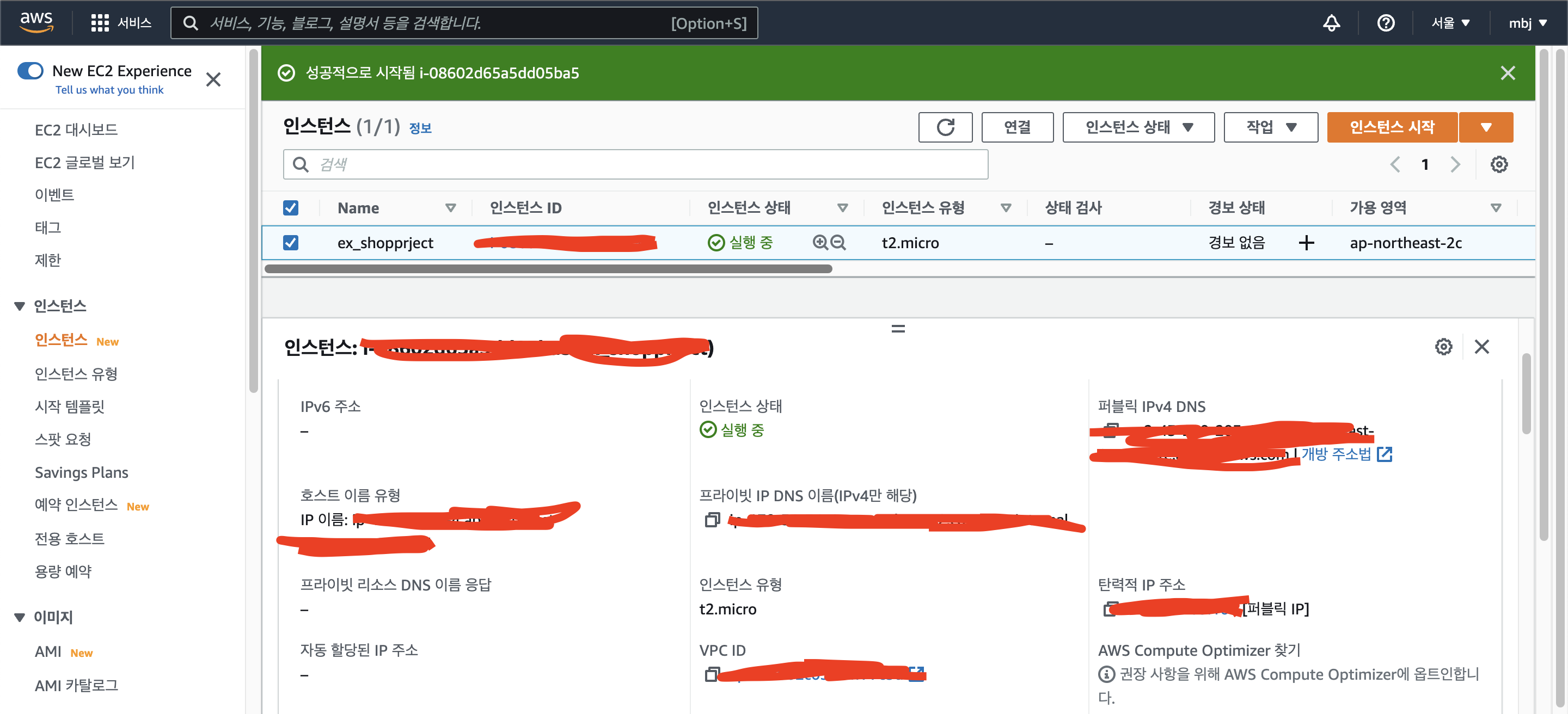 [ 생성된 인스턴스는 EC2 인스턴스 좌측 카테고리 > 인스턴스 에 들어가면 확인 할 수 있다. ]