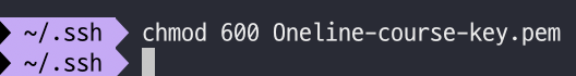 3-2. Chmod 600 pem 키의 파일명을 입력하여 권한을 변경한다.