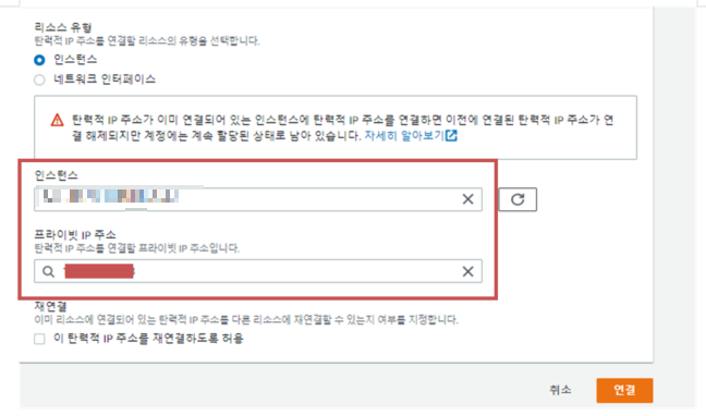 10-3. 인스턴스 및 프라이빗 IP 주소를 선택 > 연결 클릭