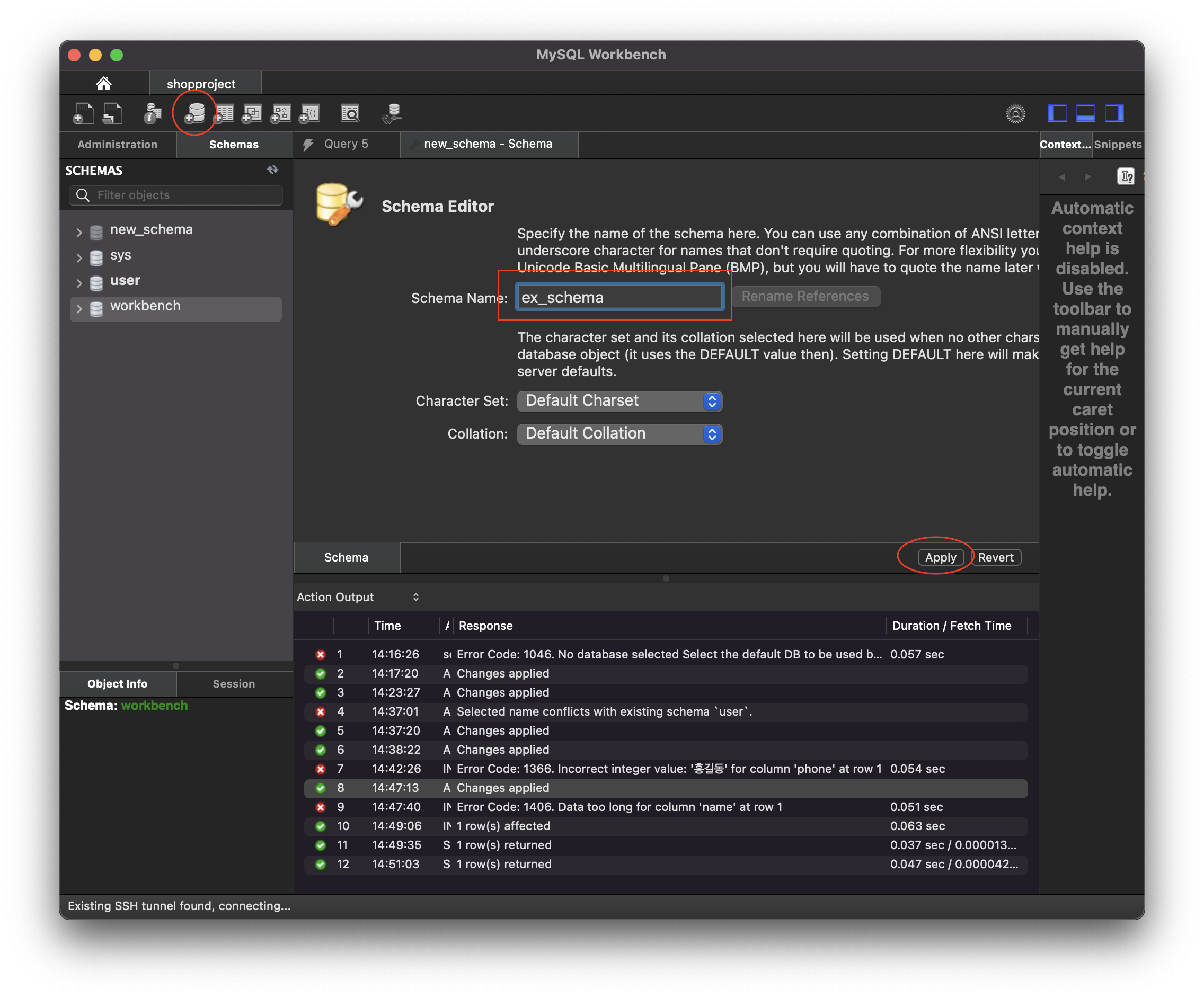 3. Workbench에서 스키마(데이터베이스) 만들기