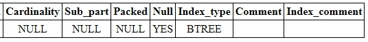 - Index_comment : 인덱스에 관한 모든 기타 정보를 표시함.