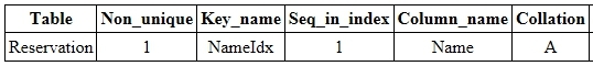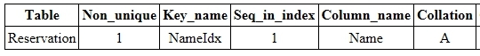 [Reservation 테이블의 Name 필드에 Nameldx라는 인덱스를 설정하는 예제]