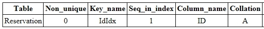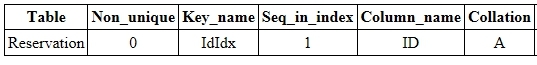 [Reservation 테이블의 ID 필드에 UNIQUE INDEX를 추가하는 예제]