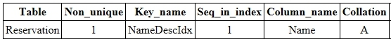 [Reservation 테이블의 Name 필드(내림차순)에 NameDescldx라는 인덱스를 설정하는 예제]