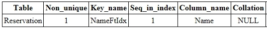 [Reservation 테이블의 Name 필드에 FULLTEXT INDEX를 추가하는 예제]