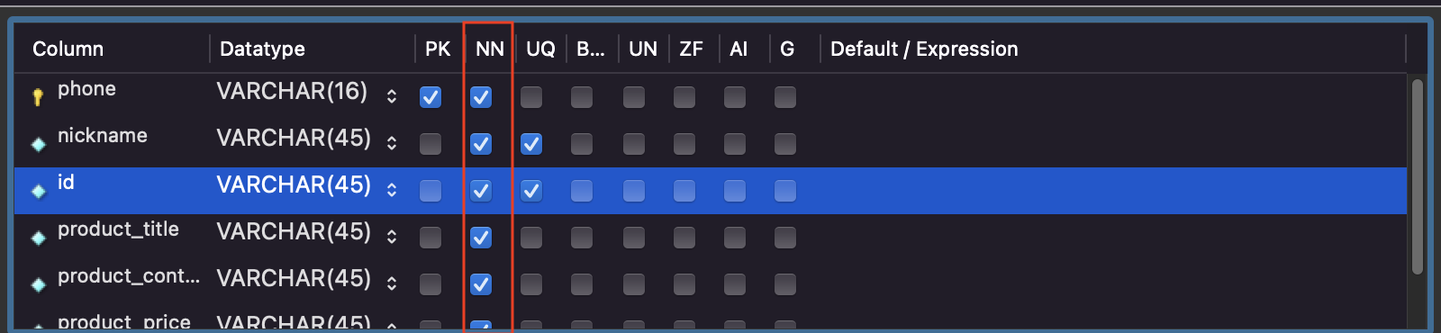 - NOT NULL 제약조건을 설정할 시에 해당 컬럼에는 꼭 데이터를 입력해야함