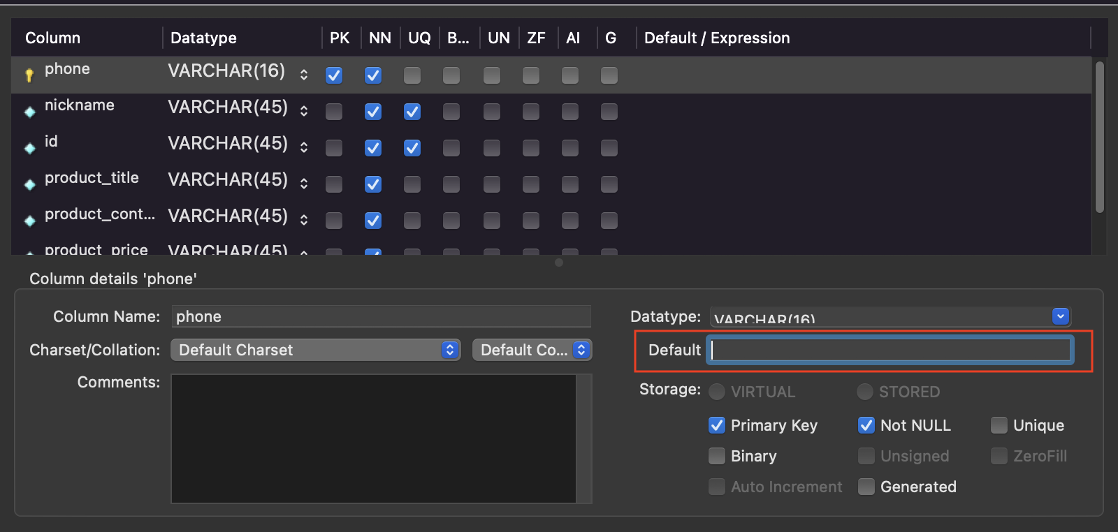 - ddefault라고 값을 명시하면 그 입력한 기본값이 들어간다.