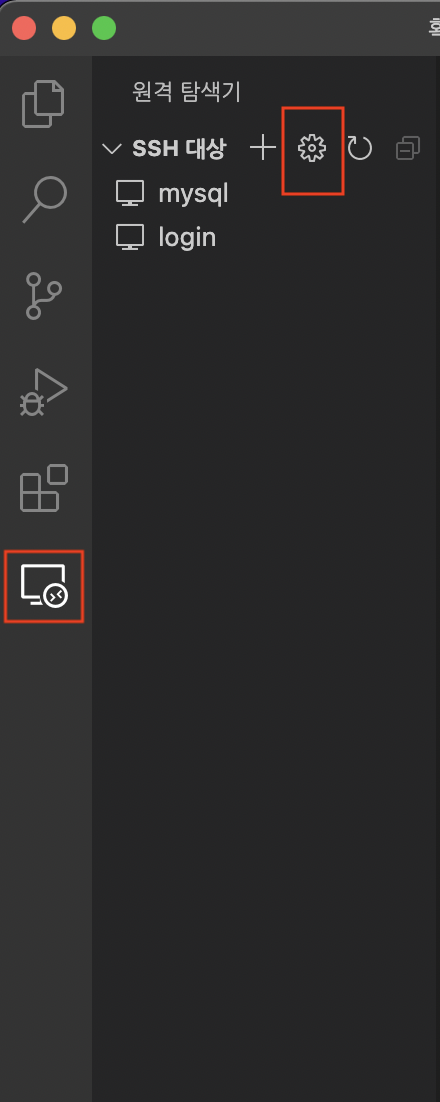 5. 원격탐색기를 클릭 -> 톱니바퀴를 클릭한다.