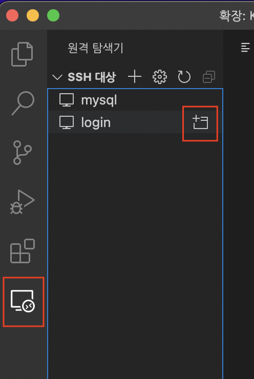7. 원격탐색기 -> config 파일의 Host이름(필자는 login으로 설정함) -> 새 창