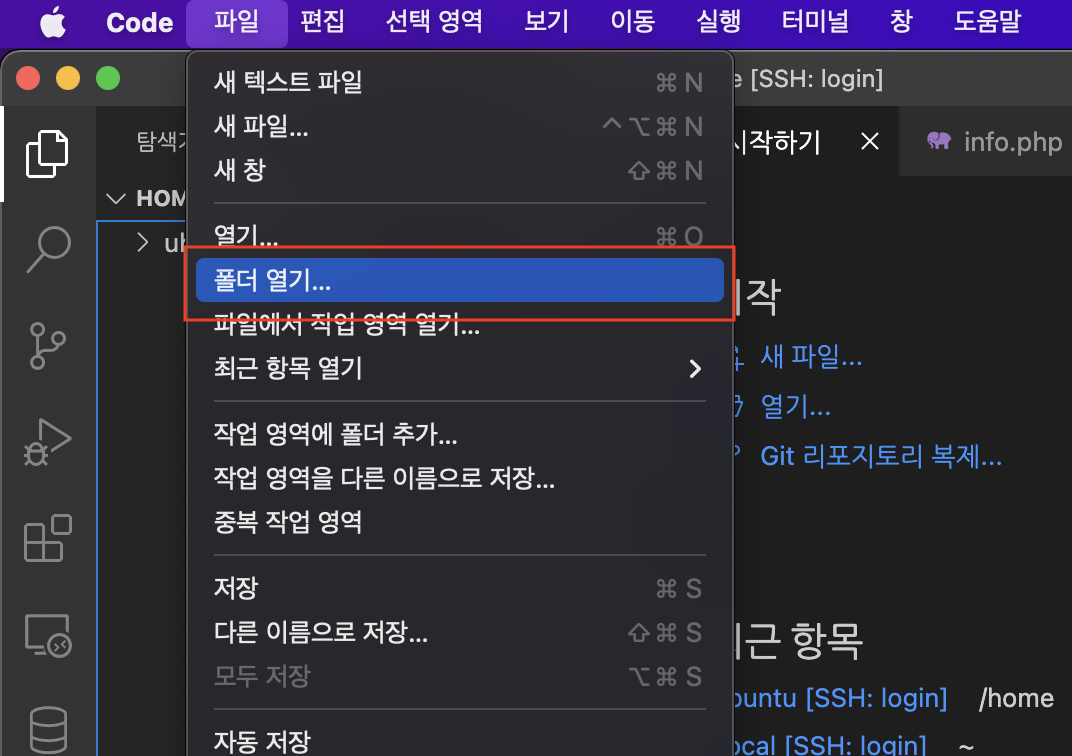 ◼️ 3-1. 폴더열기 - /home 설정