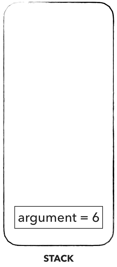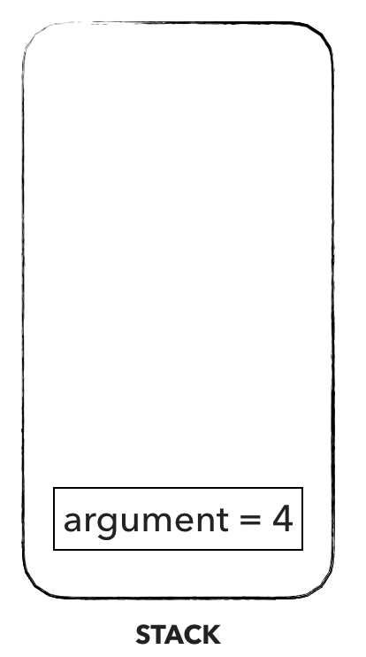 1. int argument= 4; 에 의해 스택에 argument라는 변수명으로 공간이 할당되고, argument 변수의 타입은 기본자료형이므로 이 공간에는 실제 4라는 값이 할당된다.