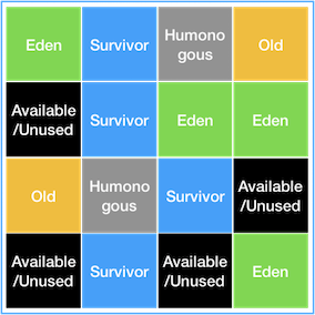 [ 쉽게 말해, 앞에 소개한 GC 방식들은 모두 Young영역과 Old영역이 정해져서 나뉘어져 있었지만, G1 GC는 바둑판 모양의 영역이 각각 Eden, Survivor, Old 역할을 동적으로 바꿔가면 GC가 일어난다. ]