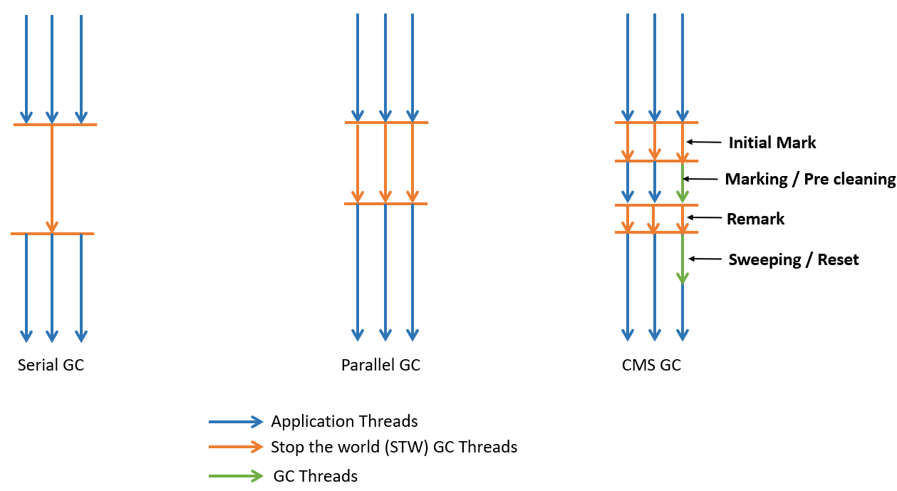 CMS(Concurrent Mark Sweep) GC는 Parallel GC와 마찬가지로 여러 개의 쓰레드를 이용한다.