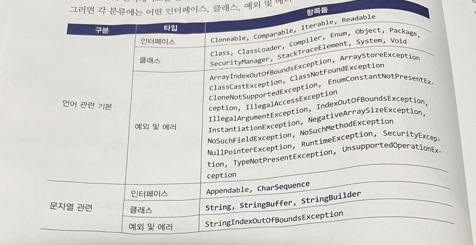 ■ 1-1. java.lang 패키지에서 제공하는 인터페이스, 클래스, 예외 클래스