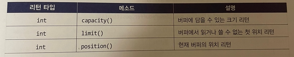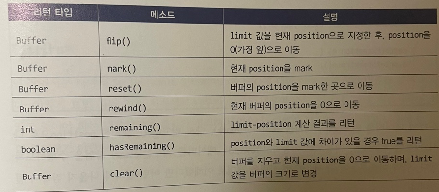 여기서 position이라는 말이 나오는데, 버퍼는 위치가 있다. 버퍼에 데이터를 담거나, 읽는 작업을 수행하면 현재의 "위치"가 이동한다.
