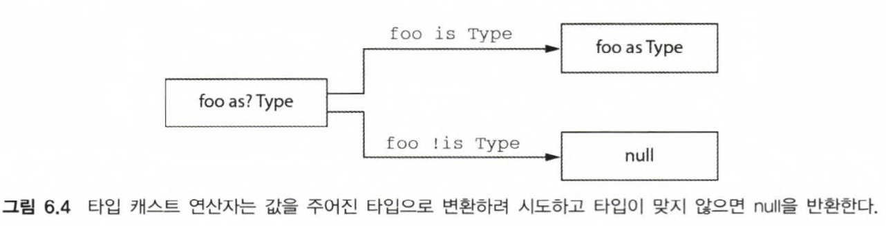 - as? 연산자를 사용하면 값을 다른 타입으로 변환하는 것과 변환이 불가능한 경우를 처리하는 것을 한꺼번에 편리하게 처리할 수 있다.