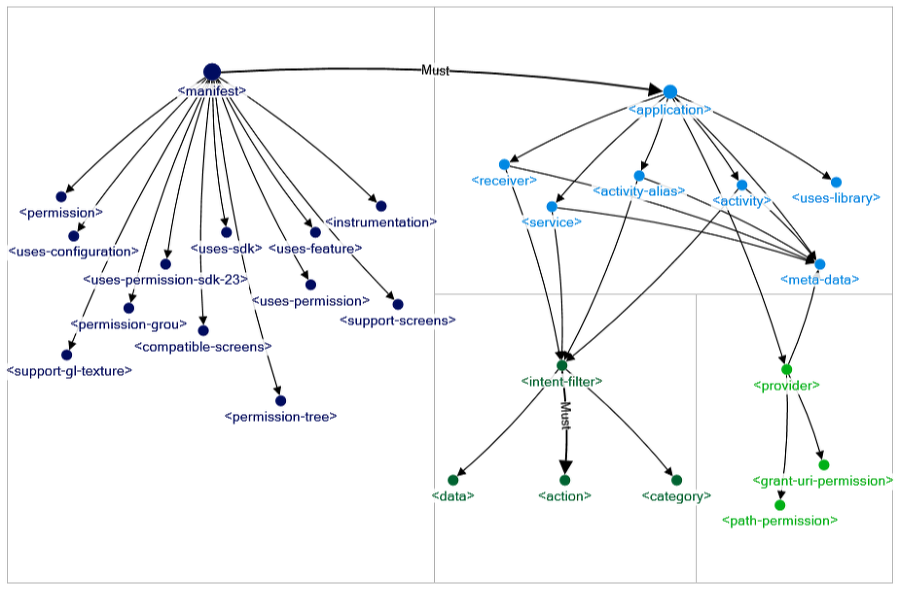 - android:sharedUserId: Android에서는 각 앱에 고유한 사용자 ID를 할당한다. android:sharedUserId은 다른 앱과 공유될 Linux 사용자 ID를 할당한다. 그러나 API 레벨 29에서 지원이 중단되었고 향후 안드로이드 버전에서 삭제될 수 있기에 사용에 유의해야 한다.